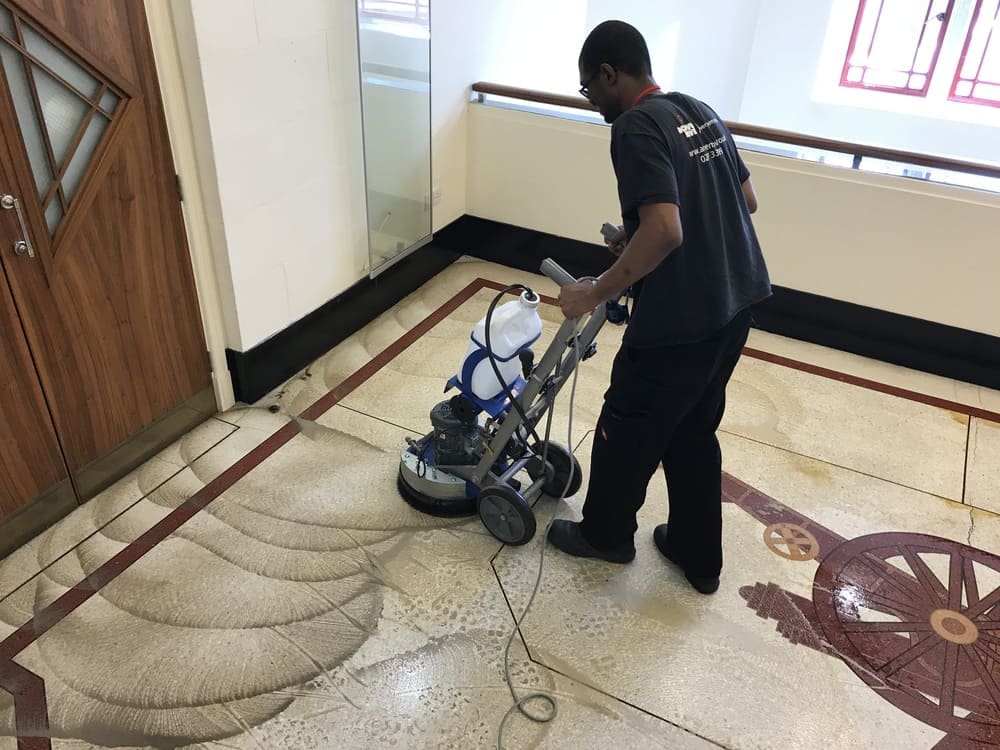 Diamond burnishing, crystallisation, and sealing to restore natural lustre.