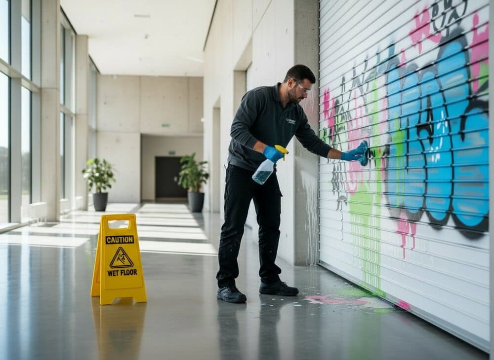 Fast response graffiti removal for commercial premises, retail units, managed residential blocks, and public spaces. Reactive and contract services available.