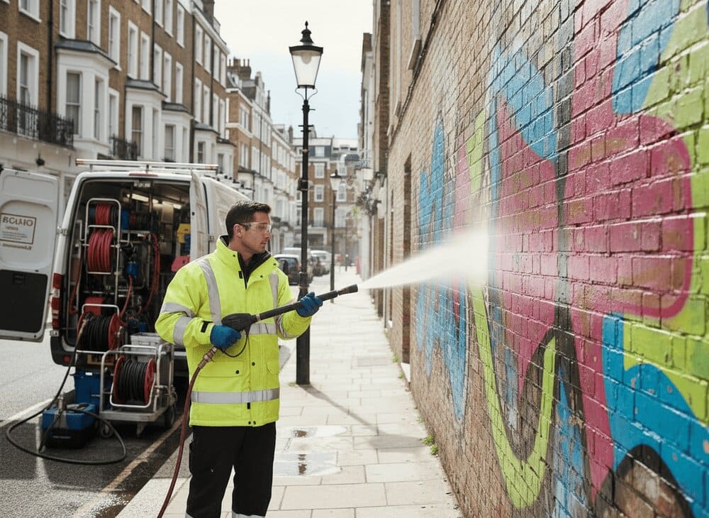 Graffiti left untreated sends the wrong message about a property and the longer it is left, the harder it becomes to remove. Quick, professional action is always the best response. Our graffiti removal team works across London on all surface types, using the right chemical treatment and technique for each material to remove graffiti cleanly and completely without shadow marks, surface damage, or lasting discolouration.